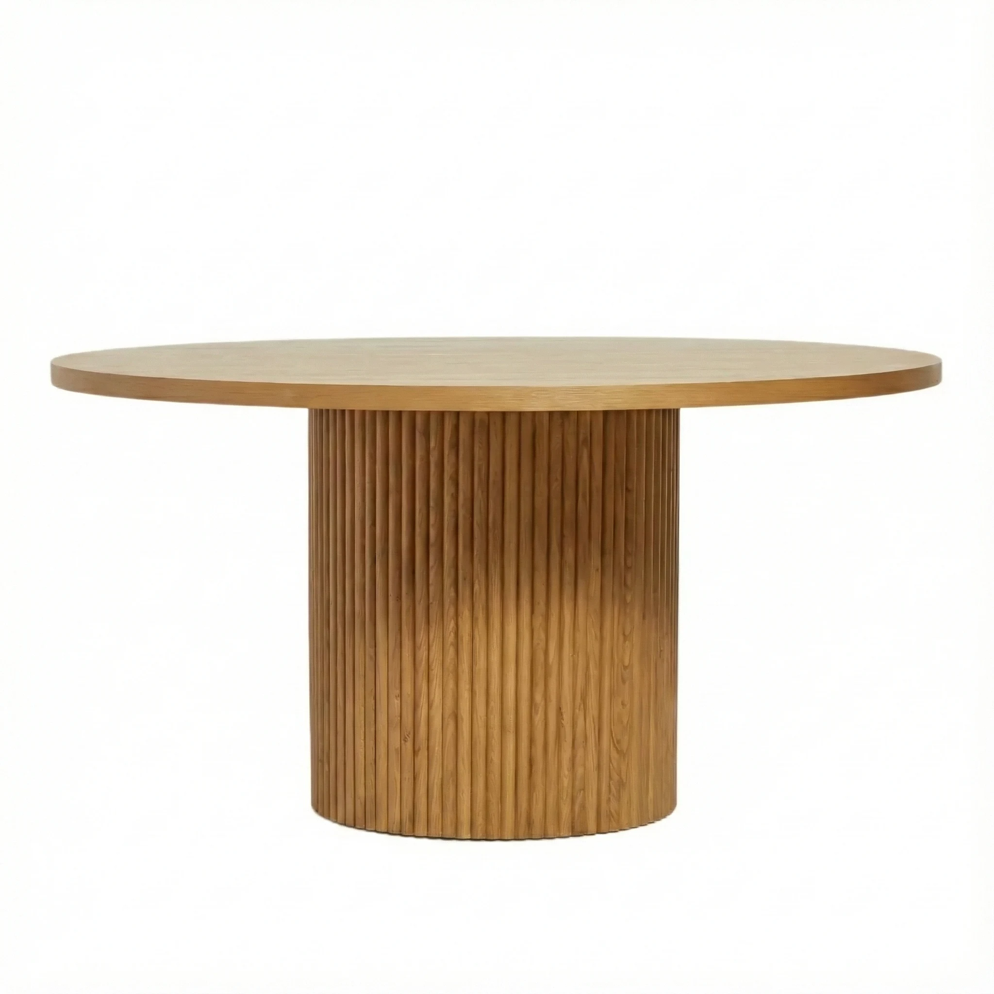 "This round dining table is absolutely stunning! The fluted base design and European veneer finish make it perfect for our family dining room. The high-quality wood construction feels incredibly durable and elegant."